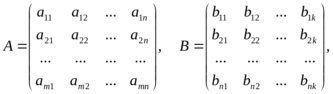 Определение. Пусть заданы две матрицы A и B, причем число столбцов первой из них равно числу строк второй. Если