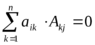 — сумма произведений элементов i-й строки матрицы A на алгебраические дополнения другой ( j-й строки,