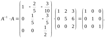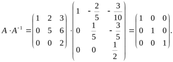Здесь E — единичная матрица соответствующей размерности.Т.е. A·A-1= A-1·A=E.