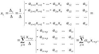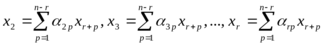 Оставим слева первые r неизвестных, а остальные n-r неизвестные перенесем вправо и получим неоднородную систему линейных уравнений относительно неизвестных
