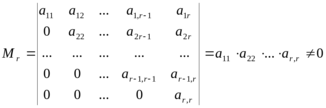 равен числу r ненулевых строк. Видно, что главный минор этой матрицы, Mr отличен от нуля: