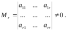 Минор Mr, расположенный в первых r строках и в первых r столбцах матрицы , называется угловым или главным минором матрицы.