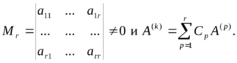 Определение. Минором матрицы порядка r называется определитель, составленный из элементов матрицы, расположенных на пересечении любых r строк и r столбцов матрицы; обозначаем Mr.