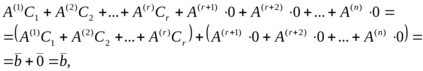 . Это означает, что среди столбцов обеих матриц есть r линейно независимых столбцов, а все остальные линейно выражаются через эти r столбцов. Не умаляя общности, положим, что линейно независимы первые r столбцов