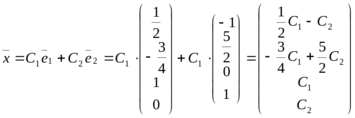 — линейно независимые решения однородной системы размерность пространства решений которой d = n– r = 4 – 2 = 2, т.е.