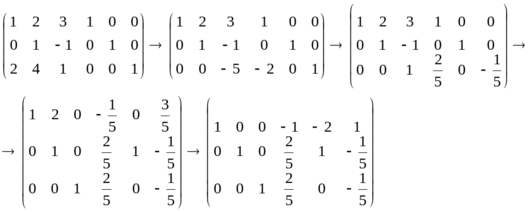 Пример 3. Найдем методом Гаусса-Жордана матрицу, обратную к матрице