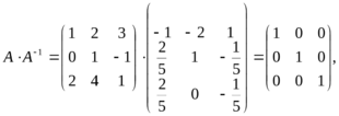 Эти n систем можно решать методом Гаусса-Жордана одновременно, поскольку у всех у них одна и та же матрица. Запишем матрицу, содержащую в первых n столбцах матрицу системы, а в последних n столбцах — единичную матрицу, и выполним Гауссово исключение так, чтобы получилось: