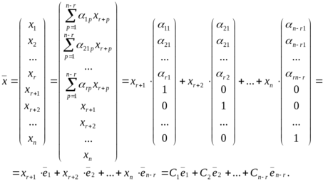 Здесь для простоты полагали, что базисные переменные — это первые r переменных. Вообще говоря, это могут быть любые r переменных.