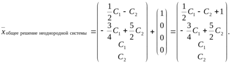 Получили выражение базисных переменных через свободные переменные. Такое выражение — общее решение неоднородной системы, записанное «на языке систем».