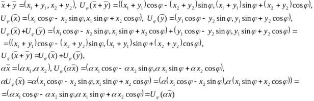 4. Оператор U поворота пространства R2 на угол φ относительно начала координат против часовой стрелки: