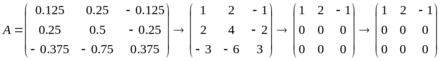 Пример. Найдем ранг, дефект и базис ядра линейного оператора A, заданного в некотором базисе в R3 матрицей