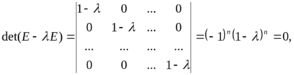 — единственное собственное значение тождественного оператора, а соответствующие собственные векторы — все ненулевые векторы пространства Rn. -
