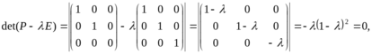 — собственное значение оператора, проектирования, а соответствующие собственные векторы — все ненулевые векторы R3, третья координата которых равна нулю:
