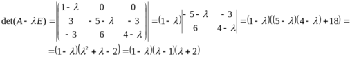 Пример (ТР Линейная алгебра, задача 9). Найти собственные значения и собственные векторы линейного оператора, заданного в некотором базисе матрицей