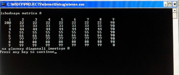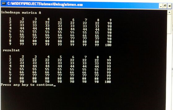 | Результат | А | Измененная матрица | {А}9,9 | целое |