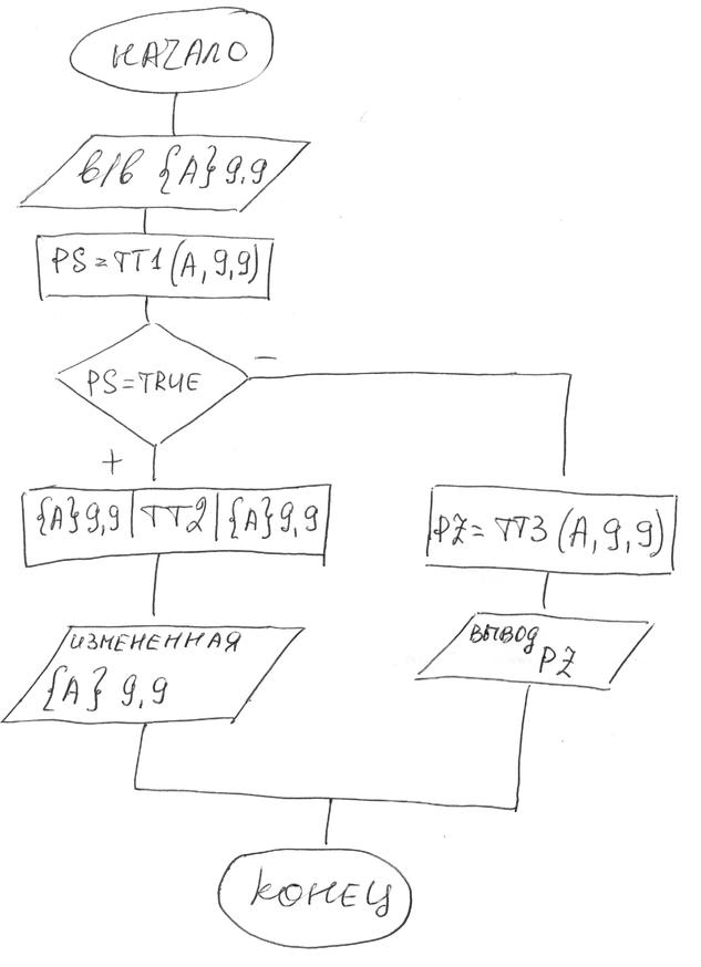 | Исходные данные | А | исходный матрица | {А}9,9 | целое |