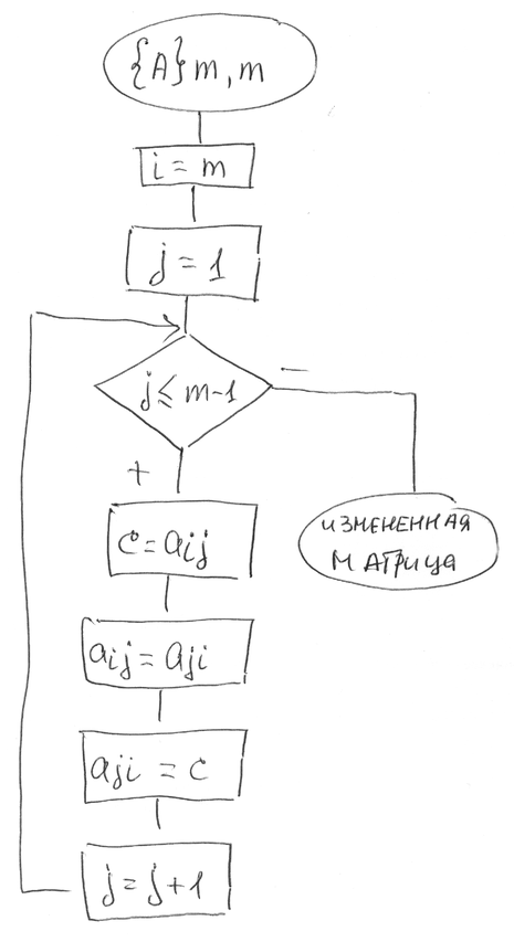 | Результат | А | Измененная матрица | {А}m,m | целое |
