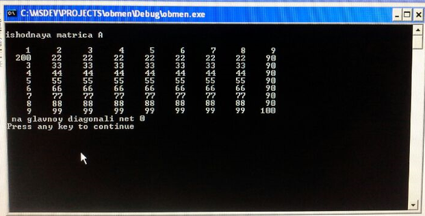 write (*,*)' na glavnoy diagonali imeetsya 0'