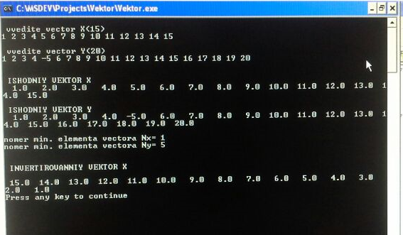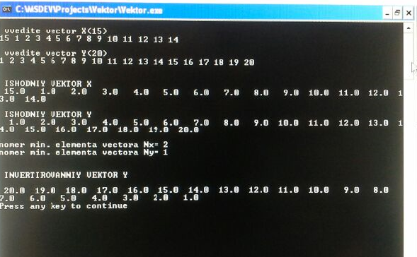 | Промежуточные данные | j, i | Промежуточный номер элемента вектора | простая переменная | целое |