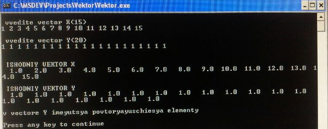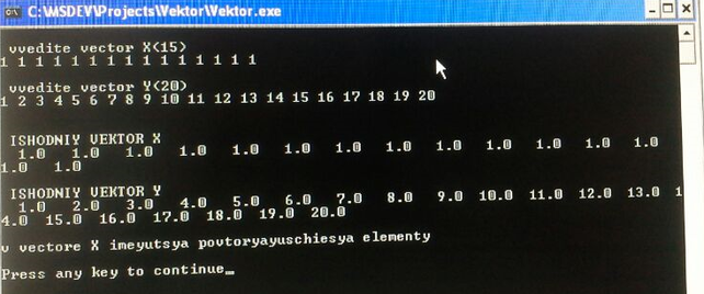 write(*,2)' v vectore Y imeyutsya povtoryayuschiesya elementy'