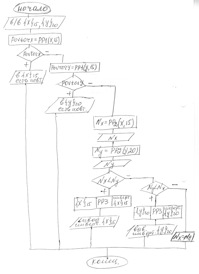 Если ни в одном из векторов X(15), Y(20) нет повторяющихся элементов, изменить индексацию того вектора, где номер минимального элемента меньше, на обратную.