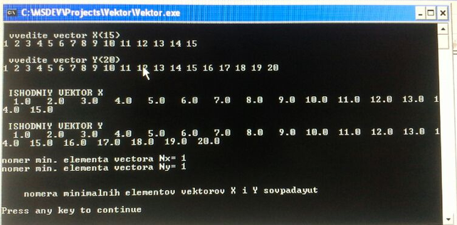 write(*,5)' nomera minimalnih elementov vektorov X i Y sovpadayut'