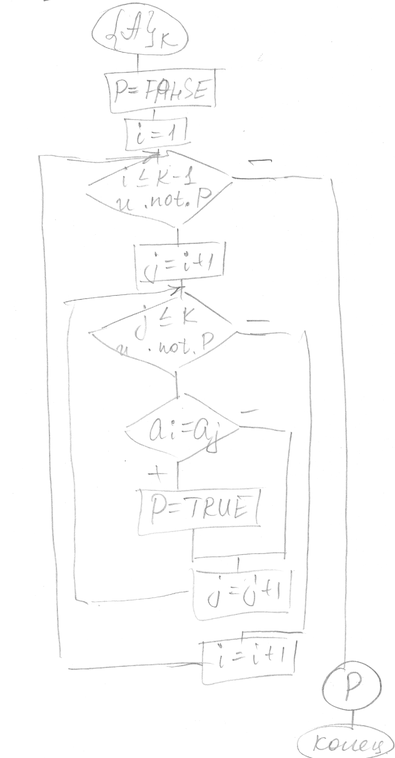 Подпрограмма pp1 проверяет вещественный вектор на отсутствие/наличие повторяющихся элементов