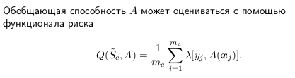 Мерой обобщающей способности явяется математическое ожидание потерь по всей генеральной совокупности.