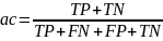 Показатель качества классификации «общая точность» (accuracy, ACC) характеризует матрицу ошибок в целом и определяется формулой