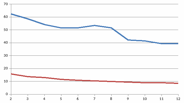 | K | 12 | 11 | 10 | 9 | 8 | 7 | 6 | 5 | 4 | 3 | 2 |