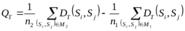 } множество пар строк таблицы обучения, принадлежащих равным классам, а M2 - множество пар строк из разных классов. Число элементов множеств M1 и M2 обозначим, соответственно, через n1 и n2. Антиблизость объектов по опорному множеству