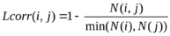 Пусть N(i,j) - число одновременных вхождений признаков Xi, Xj в одну закономерность по множеству P. Величину
