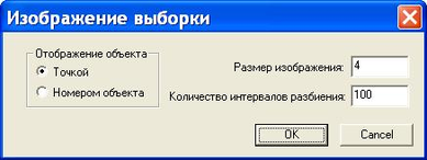 В данном диалоге можно выбрать следующие параметры изображения выборки: отображение объектов точками или номерами, размер точки/номера, число интервалов разбиения значений признака. Последний параметр используется при построении проекции выборки на один признак.