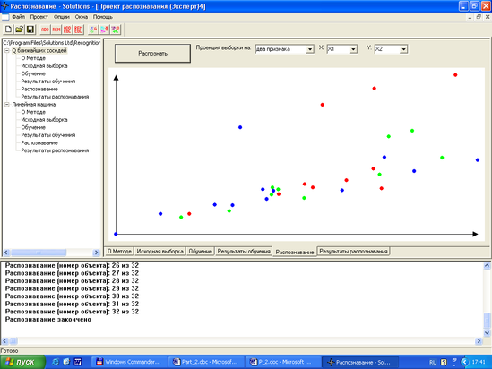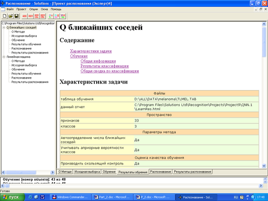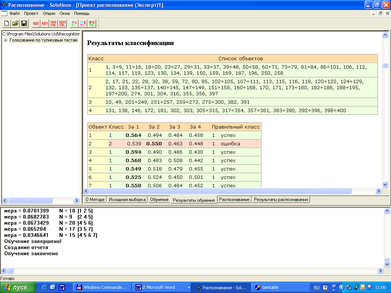 Закладки «Результаты обучения» и «Результаты распознавания».