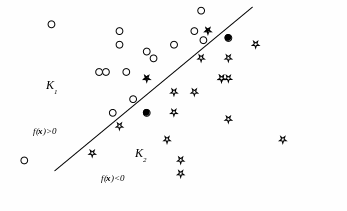 , для чего можно использовать релаксационные методы решения систем линейных неравенств /24/, метод конечных приращений /19/, алгоритмы линейного программирования и другие. Однако заранее не известно, совместна данная система или нет. Обычно системы (1.5) являются именно несовместными, т.е. обучающие выборки невозможно безошибочно разделить гиперплоскостью. Поэтому на методы решения систем (1.5) обычно накладывают следующее естественное ограничение: если система является совместной, тогда метод находит некоторое ее решение, если система несовместна – находится некоторое «обобщенное» решение системы. Под обобщенным решением понимают решение некоторой ее максимальной совместной подсистемы (находится такой набор