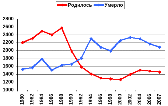 | Годы | Родившиеся | Умершие | Умершие (до 1-го года) |