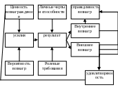 Человек определяет для себя ценность вознагр., оценивает вероятность достижения цели и получения вознагр. Это определяет его трудовое усилие. На достижение цели влияют способности работника и ролевые требования. Достижение цели влечет внутреннее и внешнее вознагр., которое оценивается как справедливое или нет. Отсюда удовлетворенность работой или нет. Это влияет на последующую оценку вероятности будущих вознаграждений.