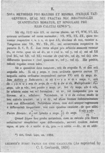 Первая страница первой работы Лейбница по анализу бесконечно малых (по изданию 1858 г.)