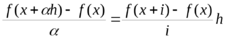 Исходя из определения предела, Коши дает примеры такие, как предел sinα/α при α=0. Затем он определяет «бесконечно малое переменное» как переменное число, предел которого есть нуль, и далее постулирует, что ∆y и ∆x «будут бесконечно малыми количествами». Затем он пишет ∆y/∆x=(f(x+i)-f(x))/i и называет предел при i→0 «производной функцией у' или f(x)». Он полагает затем i = αh, где α — «бесконечно малое», a h— «конечное количество»: