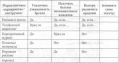 В‑четвертых. Теперь самое главное. Определитесь с задачами. Решите, для чего вы будете проводить то или иное мероприятие, пользоваться тем или иным инструментом маркетинга? В результате у вас должна получиться примерно такая таблица: