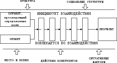 Отношения между субъектом и объектом не жестко структурированы, т.к. объект практически не видит субъекта, они видят политического актора (например, избиратели не видят избирательную команду). Специфика управленческого взаимодействия заключается в том, что субъект играет в нем активную роль. Он стремится вовлечь во взаимодействие определенные слои населения или социальные группы, предпринимая для этого различные усилия. Однако управление в политике никогда не ограничивается одним актом взаимодействия. Это – определенная последовательность взаимодействий разного характера, так как достижение политических целей требует от субъекта многоплановых действий, без которых обычно невозможно добиться изменения поведения объекта в нужном направлении.