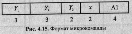 Теперь мы можем определить размеры полей микрокоманды. Поле микроопераций будет состоять из трех подполей — Yi, У2 > (назовем их по именам соответствующих подмножеств), размером в 3, 3 и 2 двоичных разрядов соответственно.