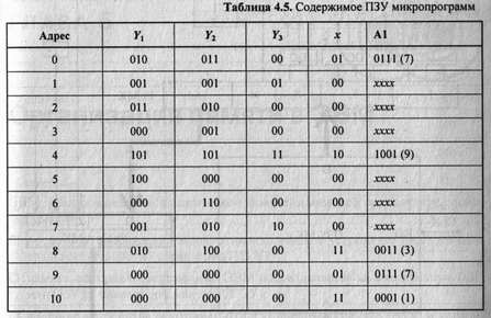 Выбрав кодировку, можно начинать писать микропрограмму в машинных микрокодах. Фактически мы формируем содержимое ПЗУ микропрограмм (табл. 4.5).