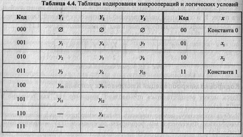 Кодировка микроопераций и логических условий