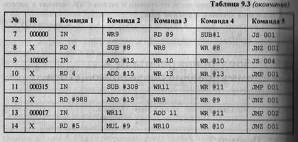 2. Записать в ОЗУ "программу", состоящую из пяти команд— варианты задания выбрать из табл. 9.3. Команды разместить в последовательных ячейках памяти.