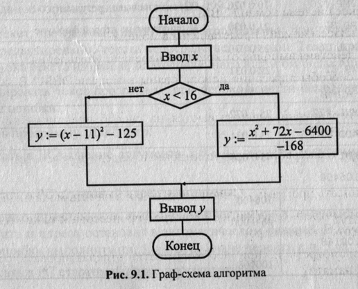 причем х вводится с устройства ввода IR, результат у выводится на OR. Граф-схема алгоритма решения задачи показана на рис. 9.1.