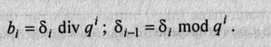 2. Частное от деления снова целочисленно разделить на q с выделением остатка; процедуру продолжать до тех нор, пока частное от деления не окажется меньше q.
