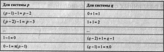 Идея алгоритма перевода предельно проста: положим начальное значение Zq:=0; из числа Zp вычтем 1 по правилам вычитания системы р, т.е. Zp:=Zp-\, и добавим ее к Zq по правилам сложения системы q, т.е. Zq := Zq +1 . Будем повторять эту последовательность действий, пока не достигнем Zp=0. Правила сложения с 1 (инкремента) и вычитания 1 (декремента) могут быть записаны так, как представлено в табл. 3.1.