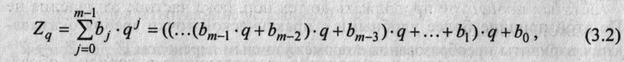 Очевидно, первая и вторая часть преобразования не связаны друг с другом, что дает основание рассматривать их по отдельности. Алгоритмы перевода Zw->Zq вытекают из следующих соображений. Многочлен (3.1) для Zq может быть представлен в виде: