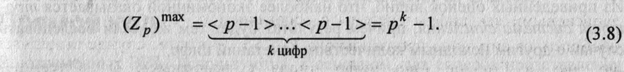 Число в системе счисления с к разрядами, очевидно, будет иметь наибольшее значение в том случае, если все цифры числа окажутся максимальными, т. е. равными р-1. Тогда